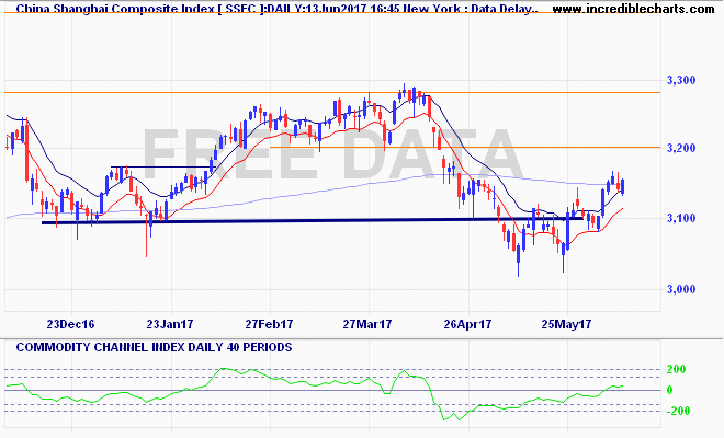 In mainland China yesterday the Shanghai Composite slid on the triple data release with FAI numbers spooking a little, sending the market down 0.7% to 3129 points, still clinging above key support at the 3100 point level. The daily chart’s bullish double bottom pattern remains firm with 3200 still the target: