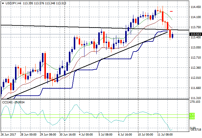 Japanese stocks are off because of the stronger Yen, with the Nikkei 225 closing 0.5% lower to be just above 20,000 points, so holding on! The USDJPY pair dropped below rolling ATR support and the daily trendline, but I’m waiting for a follow through below 113.50 or so: