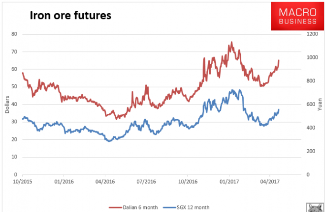 A bang on Chinese manufacturing PMI print and everyone goes nuts bidding up iron ore yesterday with futures in Dalian limit up, and other contracts up 7% or more! Amid the prints where the steel industry’s PMI which recorded a 15 month high. Here’s the price table and charts: