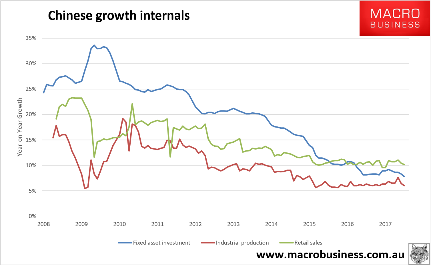 Firstly, China is slowing. Growth partials are all trending down: