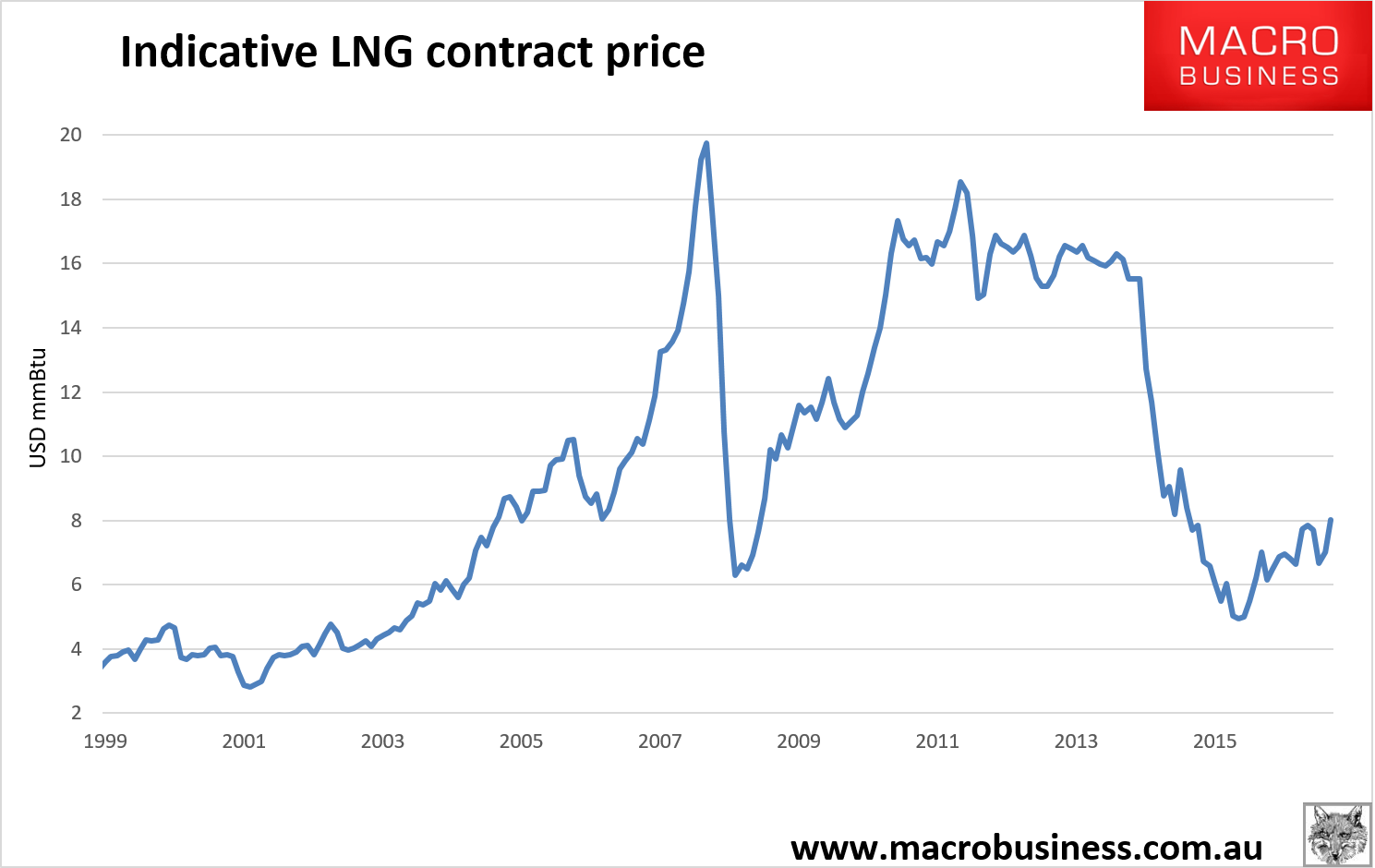 LNG sources in Queensland quote about $6 a gigajoule for a marginal cost price from the “dry” – and so expensive – gas extracted from coal seam gas seams in the state, which has become the dominant source of available gas on the east coast.