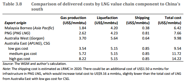 Notice that most of the cost is in building the white elephant plant and shipping not extraction. Even for extraction, these are all-in costs, that included construction of pipelines and other infrastructure which is sunk cost and much of it already written off. The marginal cost to extract the gas today is more $1Gj. The cartel can definitely do an awful lot better than $6Gj.