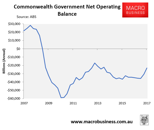 The ABS has released its Government Finance Statistics for the September quarter, which posted an improvement in the federal budget deficit in the year to September to $23.1 billion: