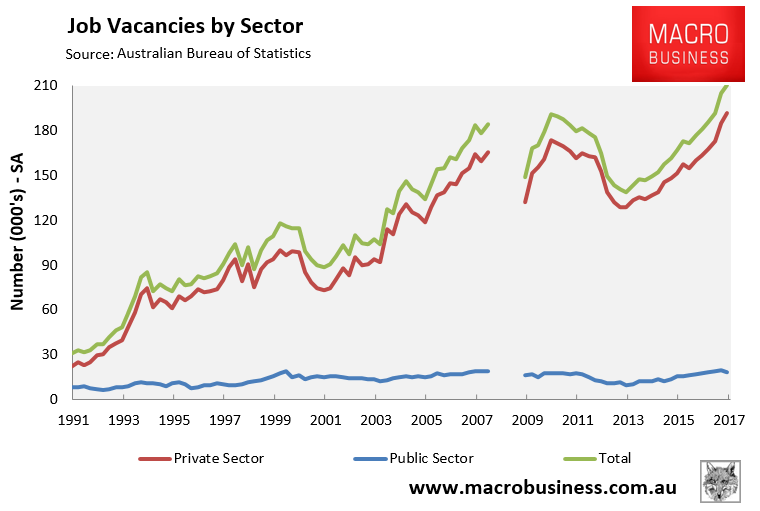 The Australian Bureau of Statistics (ABS) has released job vacancies data for the November quarter, which recorded a 2.7% seasonally adjusted rise over the quarter and a 4.2% rise in trend terms: