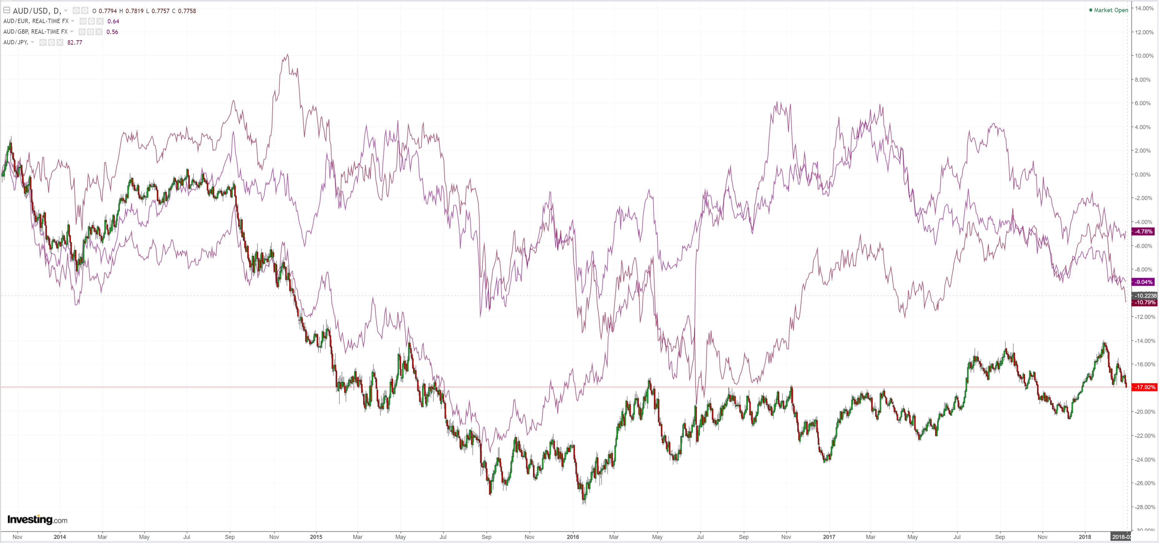 AUD fell sharply and is at new correction lows: