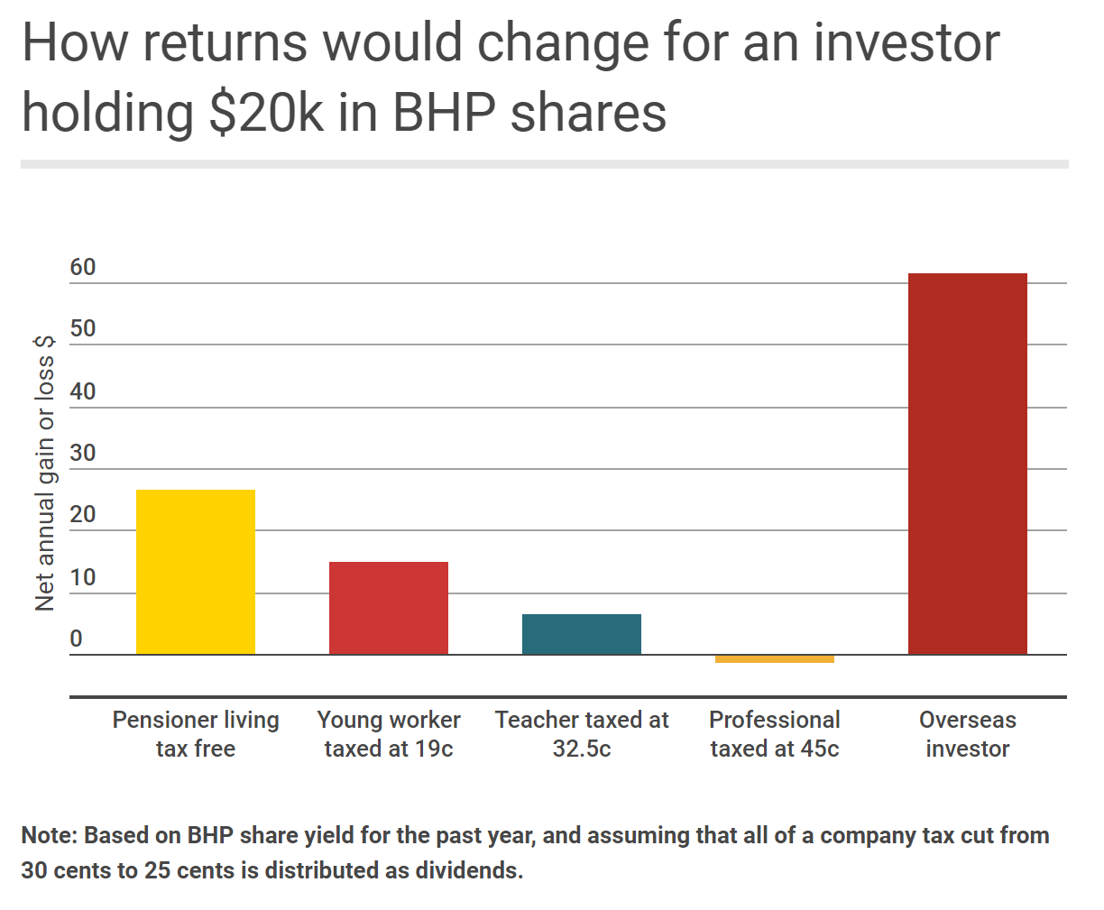 Company tax is really a ‘withholding tax’. It lets the Australian Tax Office hang on to the money until it knows who’s receiving the company profit in the form of dividends.