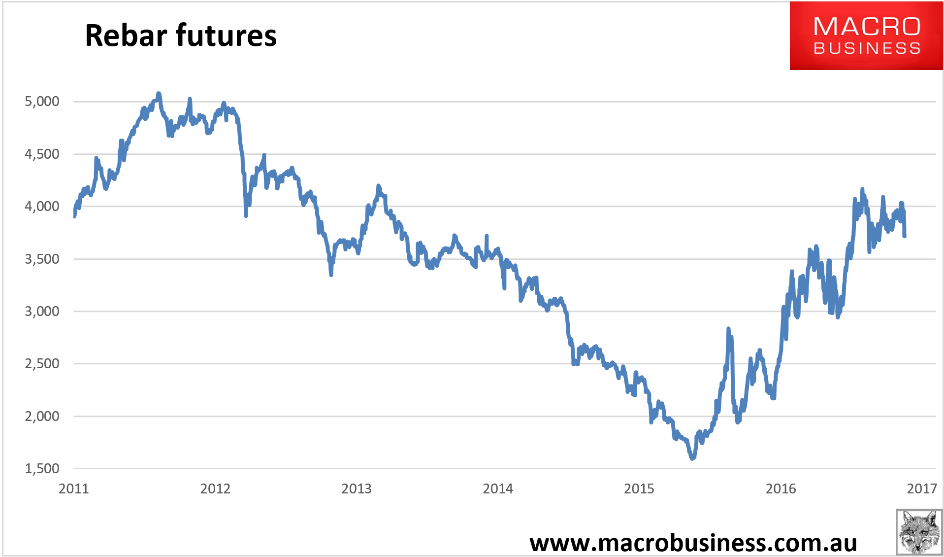 We already know that iron ore inventories are at extreme all-time highs in China. Now you can add steel stocks with Steelhome yesterday reporting that traders have now piled up 9.64mt of rebar, the highest ever for the Q1 restock: