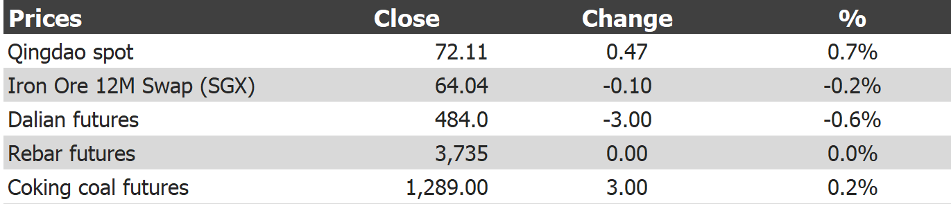 Tianjin benchmark fell 25 cents to $71.50. Paper fell overnight. Steel has not updated. CISA steel output for late February surged 4.4% as output restrictions faded, adding to already bloated inventories.