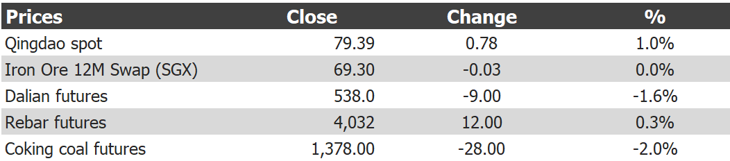 Tianjin benchmark rose 70 cents to $79.60. Paper was hit overnight on the Trump tariffs. Steel still looks firm.