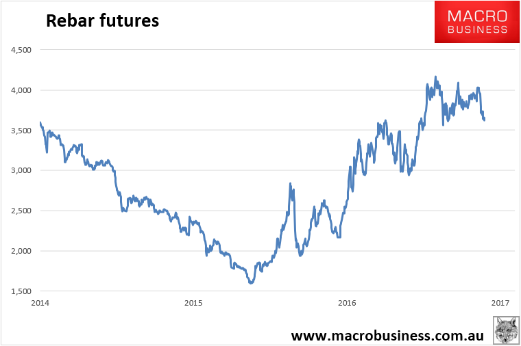 Tianjin benchmark fell 20 cents to $67.70. Steel is breaking down. Coking coal too. CISA early March steel output collapsed 7.2% in an unusually steep post-restock fall.