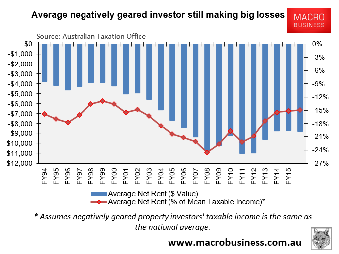 However, those that were negatively geared claimed on average $8,785 in rental losses: