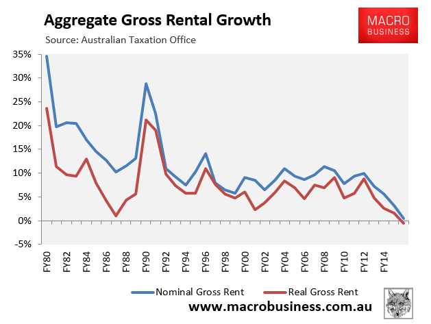 According to the ATO, there were 2,166,755 people claiming net rent in 2015-16 (2,087,468 claiming gross rent), a 1.6% reduction from the previous financial year: