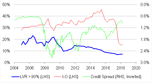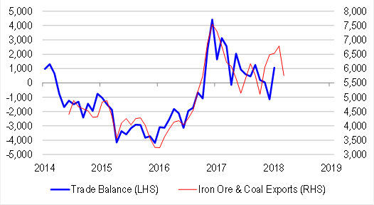 We are wary of an emerging USD shortage at the same time that the Australian credit impulse is deteriorating. We worry about latent de-leveraging risks. Indeed, AUD-denominated interbank funding conditions remain very tight, with spreads hitting new and “unexplained” highs. The Australian 3-month bank bill-OIS spread is now at 53bps, the widest level since the financial crisis. Importantly, the spread cannot be explained by conventional macro factors, such as the slope of the yield curve, corporate credit spreads or stock market volatility. Indeed, the spread of spreads to model is at historical highs (for further discussion of our interbank credit spread model, please see our recent note “Unusual money market tightening”, dated 12 March 2018). Nor can it be explained strictly by tightening USD funding conditions, because AUD-USD cross-currency basis swap spreads are very healthy (at positive, rather than negative levels), and in any case, banks do not strictly need USD funding.