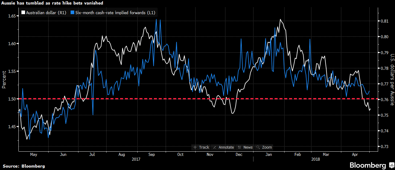 In the circumstances of a hiking Fed, possible cutting but definitely stalled RBA, and a most assuredly expanding yield spread, the Aussie dollar is going to go off another waterfall: