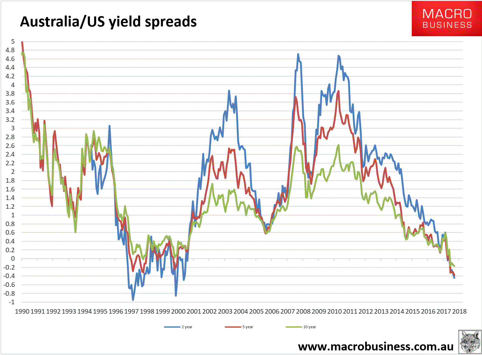 There’s no doubt that the Aussie dollar has fallen away owing to the widening yield spread to the US. In recent terms: