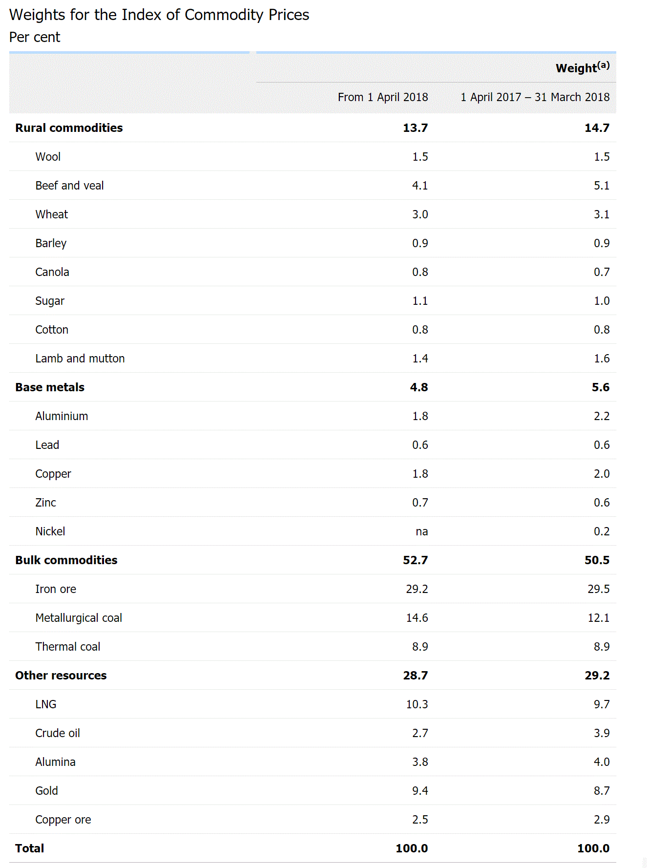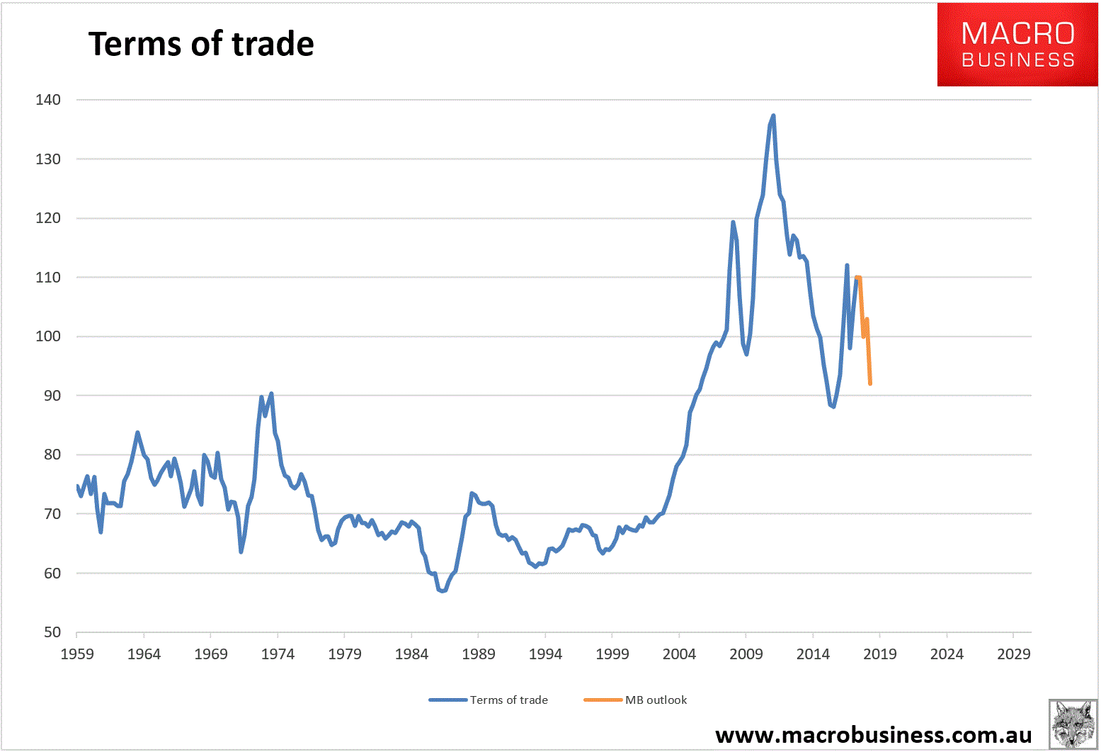 The ToT is pretty much set by four commodity prices: iron ore, coking coal, thermal coal and gold: