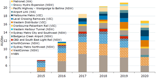 Rather than be led by the mining states, the big driver of infrastructure is now coming from New South Wales and Victoria.