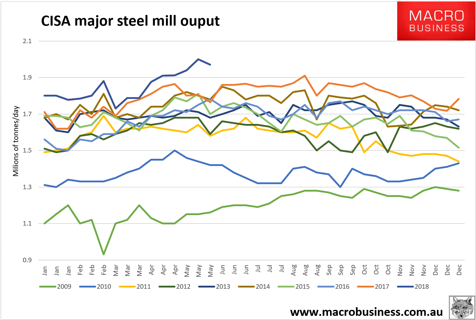 Tianjin benchmark lifted 45 cents to $65.20. Paper was flat overnight. Steel is still trying but under the deluge of output can’t rally. CISA mid-May output was still astonishing if lower at 1.97mt per day.