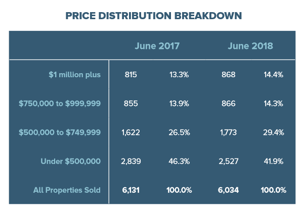 As you can see, sales are up everywhere except properties valued under $500,000.