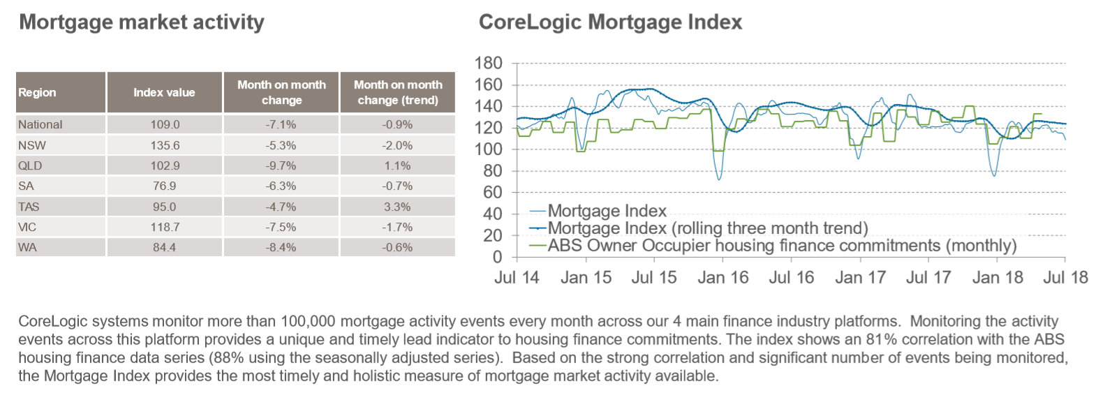 Via CoreLogic comes the leading mortgage index, which is now well below 2014 levels: