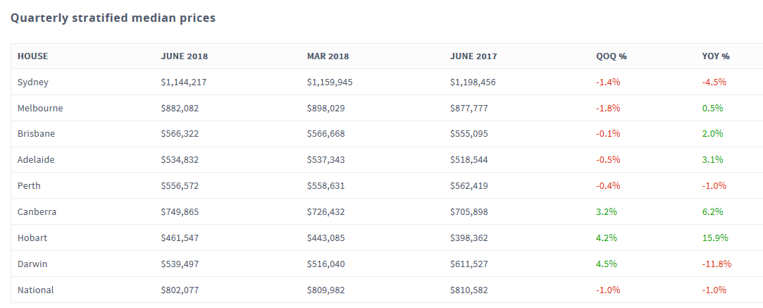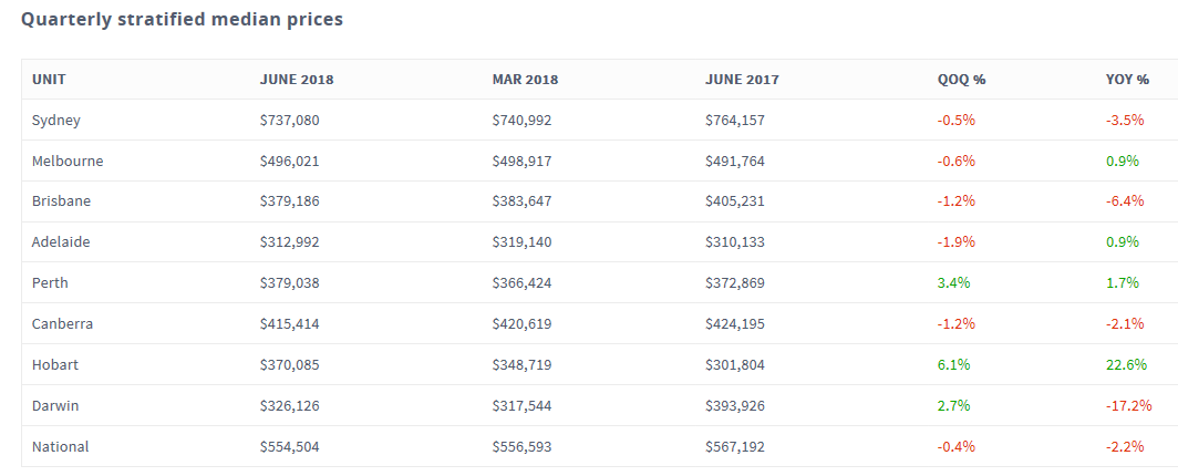 The below table shows the change in stratified median prices across the capital cities for both houses and units: