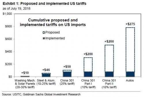 Tariffs pose a larger threat to S&P 500 EPS through lower margins. We consider adverse scenarios in which tariffs are placed on all imports from China or globally. For all US industry, roughly 15% of cost of goods sold (COGS) is imported. We assume that S&P 500 companies, which are more global in nature and have more complex supply chains, import roughly 30% of COGS. This is consistent with the 29% of S&P 500 sales is generated outside the US. Imports from China comprise 18% of total US imports.