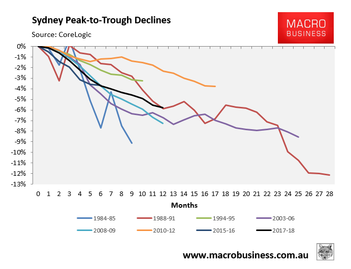 Because this is the first ever property correction that we’ve had without hiking interest rates. That means that when/if the market threatens to turn disorderly, which it doesn’t do until folks get spooked that prices are going to keep falling, there wont be any monetary ammunition left to turn it around.
