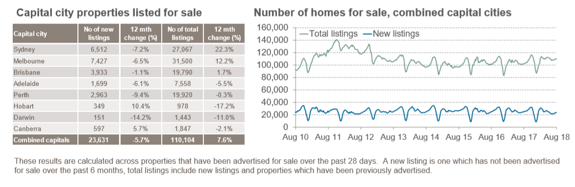 Total listings are the highest since 2012 though well below those levels, led by Sydney and Melbourne: