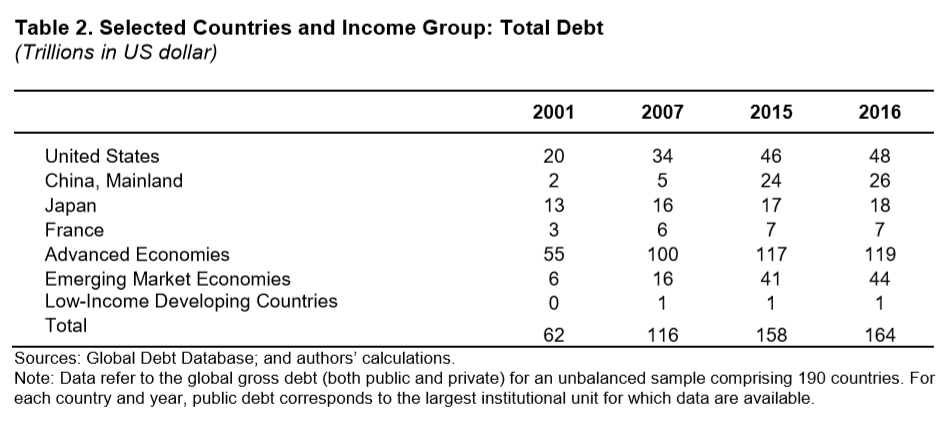 The first observation is that, almost a decade after the collapse of Lehman Brothers, global debt, at $164 trillion—or about 225 percent of global GDP—has reached new record highs…