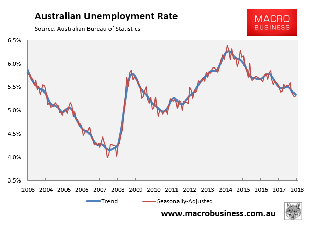 In trend terms, the unemployment rate fell marginally from 5.37% to 5.34%: