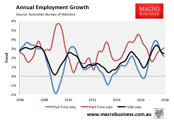 - Falling trend full-time jobs growth; and