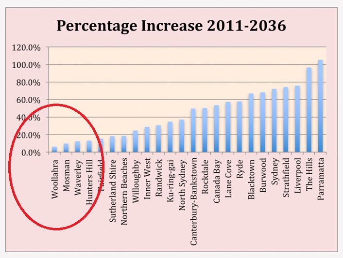 The build-out won’t be needed in his area; Sydney’s projected population growth by district: