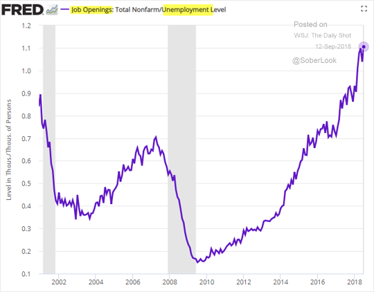 Some nice charts from the WSJ’s Daily Shot paint a terrific picture. JOLTS is red hot: