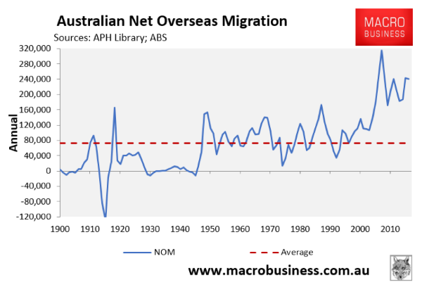 However, the argument that Australia can avoid (rather than delay) population ageing is spurious. The issue of an ageing population will need to be addressed at some point irrespective of the level of immigration. Simply importing more workers to cover the retirement of the Baby Boomers only delays the ageing problem, pushing the problem onto future generations. Further, what will be the solution in 30 years’ time when current migrants grow old, retire and need taxpayer support? More immigration and an even larger Australia?