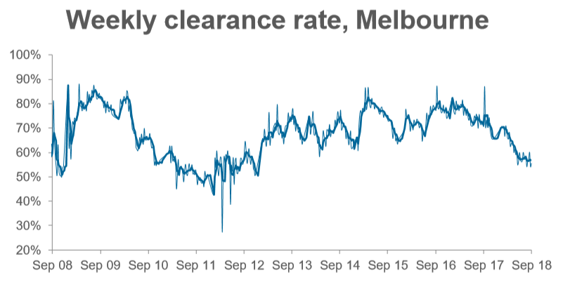 With Melbourne’s auction clearance rate plumbing 2012 lows: