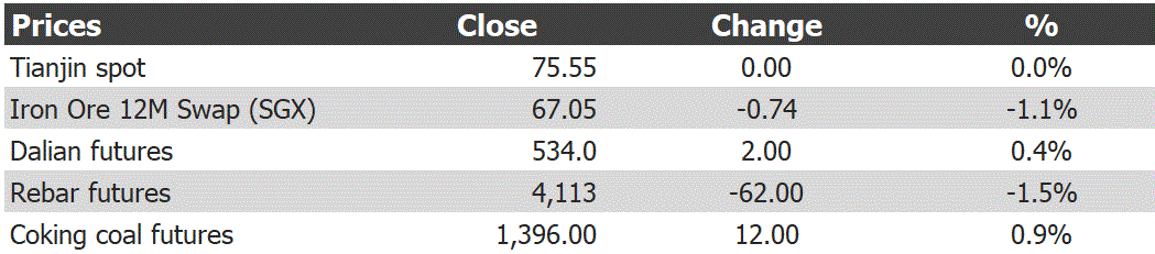 Spot and paper flat. Steel down. CISA output for mid-October has begun the seasonal draw down.