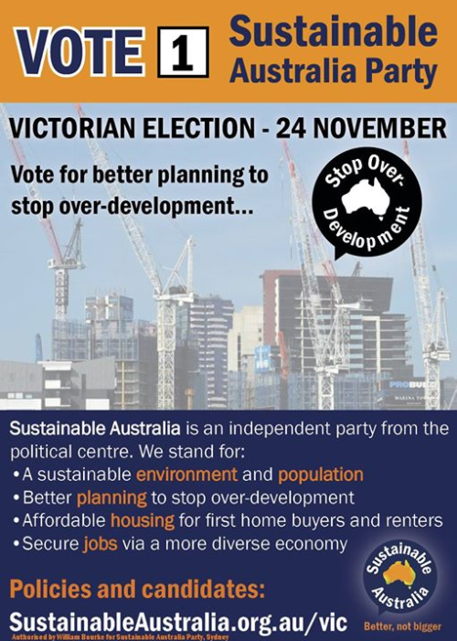 If you are a Victorian resident, please give Sustainable Australia your vote.