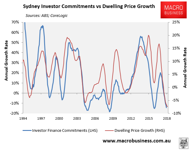As MB has illustrated repeatedly, investor mortgage demand is the marginal price setter for Sydney property: