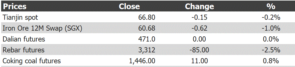 Iron ore price charts for December 10, 2018: