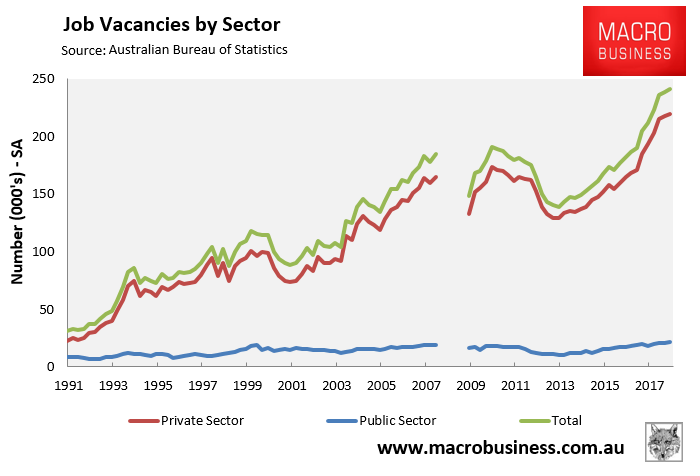 The Australian Bureau of Statistics (ABS) has released job vacancies data for the November quarter, which recorded a 1.3% seasonally adjusted rise in the number of vacancies over the quarter and a 1.7% rise in trend terms: