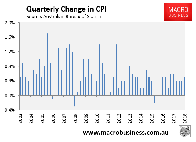 According to the ABS, headline CPI rose by 0.5% in the December quarter, 0.1% above the September quarter’s 0.4%: