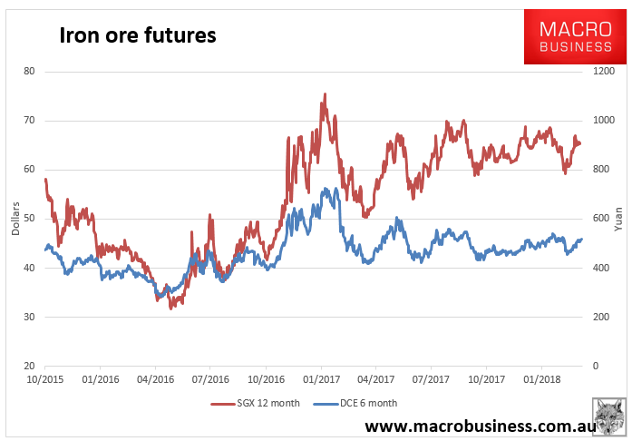 Spot iron ore prices fell slightly yesterday while the short and medium term futures edged higher alongside rebar and coking prices: