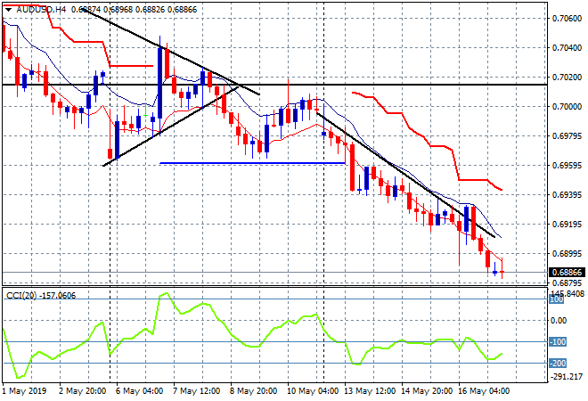 Australian stocks have done well despite all the noise plus the looming election with the ASX200 lifting another 0.7% to be at 6370 points going into the close. This is all really due to the Australian dollar which remains on a nice downtrend falling again to another new low and looking like finishing the week in the high 68’s: