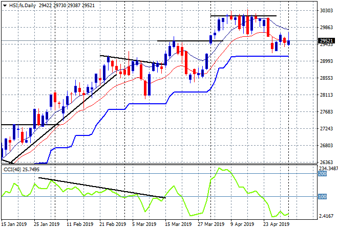 Looking first at the Asian session yesterday where the Shanghai Composite was closed while the Hong Kong based Hang Seng Index finished 0.6% higher to 29890 points, bouncing off local support at the 29000 point level so there’s still more upside potential here if the high moving average is breached: