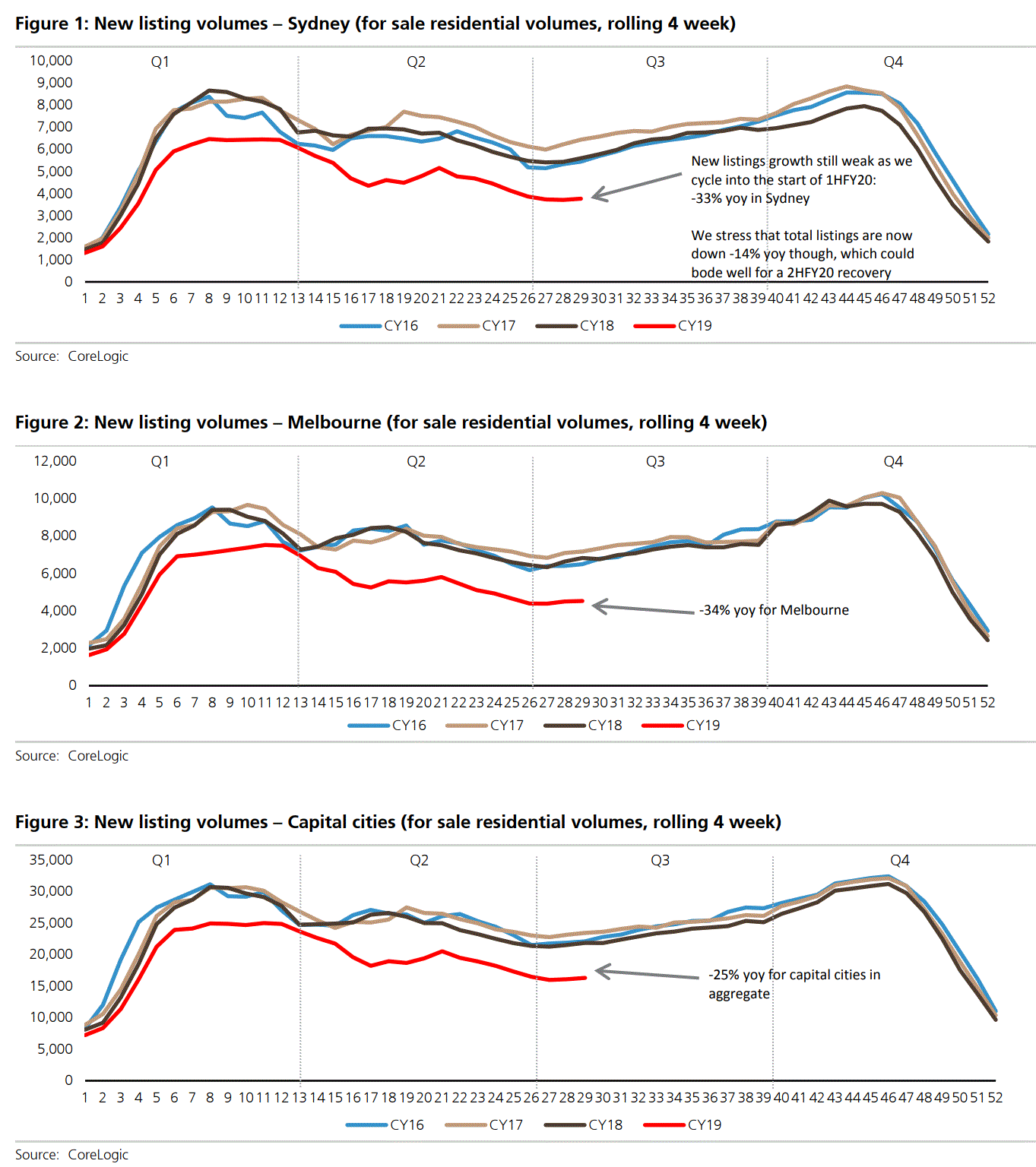 D/G to sell, too much priced in for a listings recovery that hasn’t materialised DHG is now trading c11% above our price target, and we lower our rating to Sell (from Neutral)…FY20 revenues look set to disappoint vs. market, but there may be a cost offset DHG is executing well on depth / yield per listing initiatives – but we think these will be offset by the listing volume declines described above, and DHG normalising to 52 weeks in FY20 (vs. 53 weeks in FY19). Future price changes due 1-Jan-20 also remain uncertain but we note REA has slowed FY20 price increases, with a commitment to slow price increases (for Premiere All) further in FY21. We cut FY20 residential revenue growth to +5% (vs. previously +12%). However we also cut FY20 opex ex-transactions growth to -1% (from +4%), given DHG has shown a willingness to slow costs in line with revenues. As such EBITDA (-4%) and NPAT revisions (-5%) are less severe.