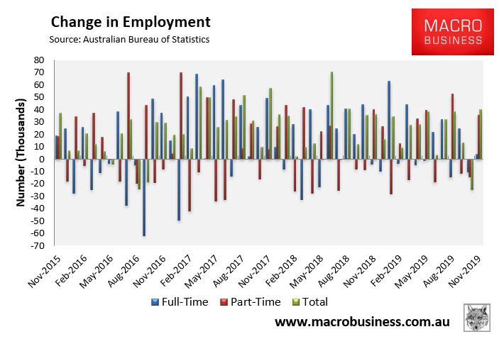 As summarised earlier, the Australian Bureau of Statistics (ABS) today released its labour force report for November, which registered a 39,900 increase in total employment and a decrease in the headline unemployment rate (from 5.3% to 5.2%).