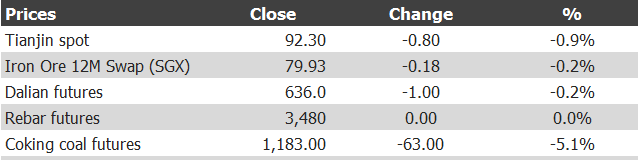 Iron ore charts for December 18, 2019: