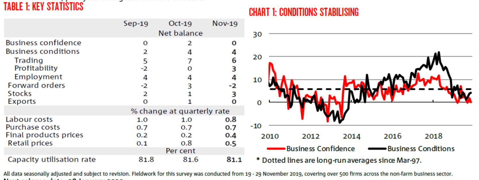 • How confident are businesses? Confidence fell 2pts in November to 0 index points – unwinding last month’s increase.
