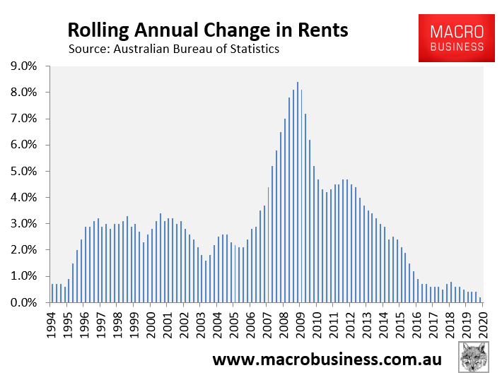 According to the ABS, rents registered zero growth in the December quarter and grew by just 0.2% over the year: