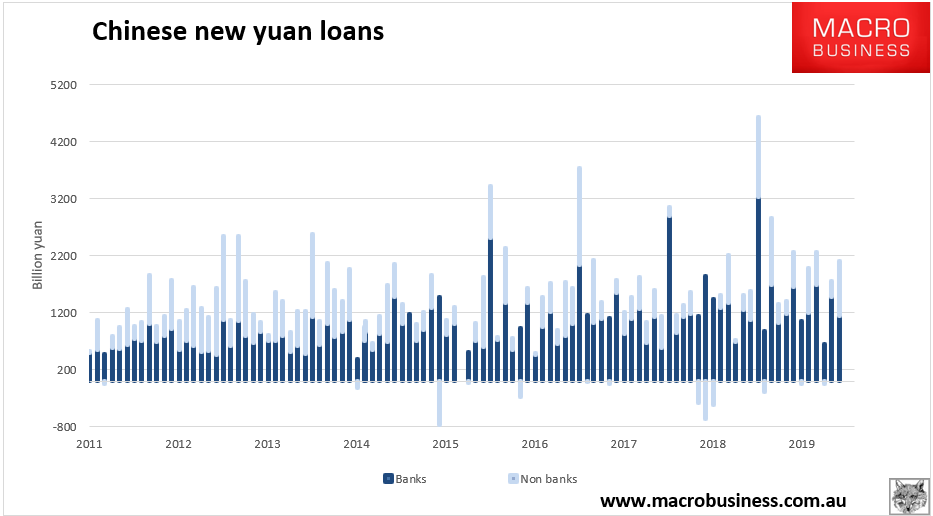 Neither up nor down though you have to look carefully. New yuan loans appeared to boom in December with total socail financing at 2.1tr yuan.